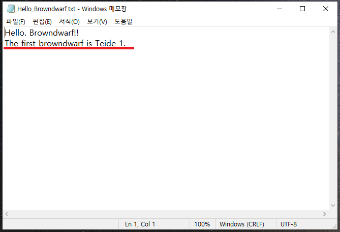 버전 관리 기능을 Test 하기 위해 기존에 Upload 했던 'Hello_Browndwarf.txt' 파일을 <pic 14>의 아래 붉은 색으로 표기한 내용을 추가한 후 다시 Upload 했다.