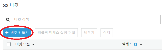 AWS Management Console에 접속한 뒤 '서비스' > 'Storage' > 'S3'로 진입하면 <pic 1>과 같이 Bucket 진입 화면이 나오고, 상단에 있는 '버킷 만들기'를 Click하면 <pic 2>와 같은 버킷 이름과 버킷을 생성할 리전(S3는 리전 단위로 생성된다. 가용 영역 기준이 아니다.) 입력을 요구하는 Popup 창이 보여진다. 버킷 이름은 전 AWS Service에 걸쳐 유일한 이름을 가져야 한다는 점을 유의해야 한다. 이는 S3가 URL로 접근 가능한데 URL이 Bucket 이름으로 만들어 지기 때문이다. (참조)
