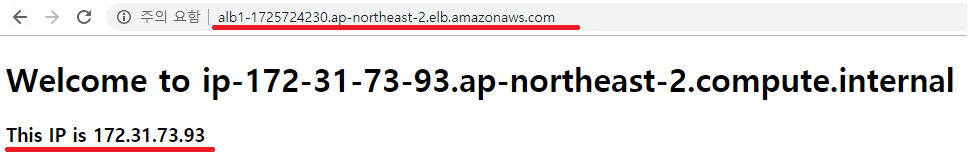 위와 마찬가지로 Browser를 통해 접근했을 때 모두 자신의 Private IP를 기반으로 <pic 11>, <pic 12>와 같이 정상적인 결과를 보내주고 있다.