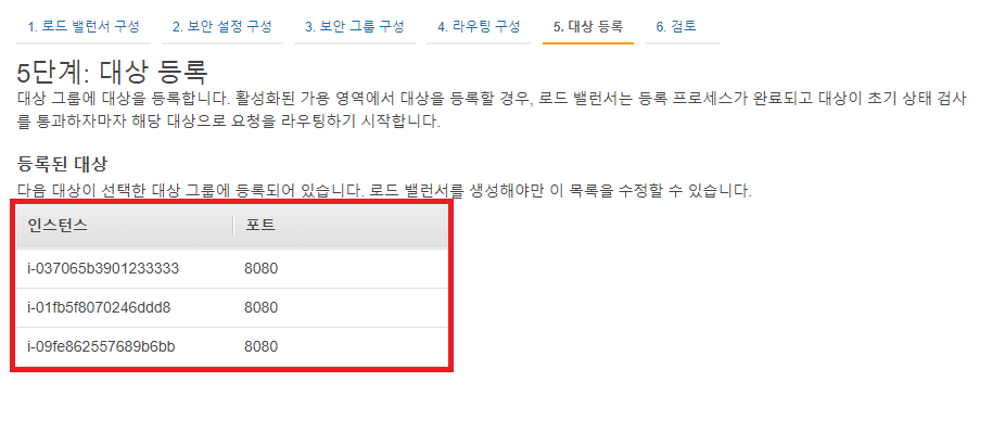 라우팅 구성 과정에서 대상 그룹을 입력했기 때문에 대상 등록 단계에서는 <pic 24>와 같이 EC2 Instance를 확인만 하고 ALB를 생성하면 된다.