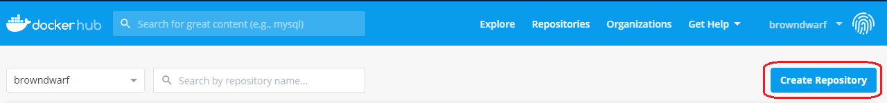 위의 Link를 따라가면 Docker Hub Site가 나오고, 계정을 생성하면 개인 Registry가 생성이 된다. 무료로 사용할 때에는 1개 Repository만 Private으로 제공되고 다른 Repository들은 Public으로 설정되야 한다. 계정을 만들고 Login한 후에 <pic 1>과 같이 상단 바에 있는 'Create Repository' 버튼을 Click하면 이름이 동일한 Docker Image를 위한 Repository를 만들 수 있다.