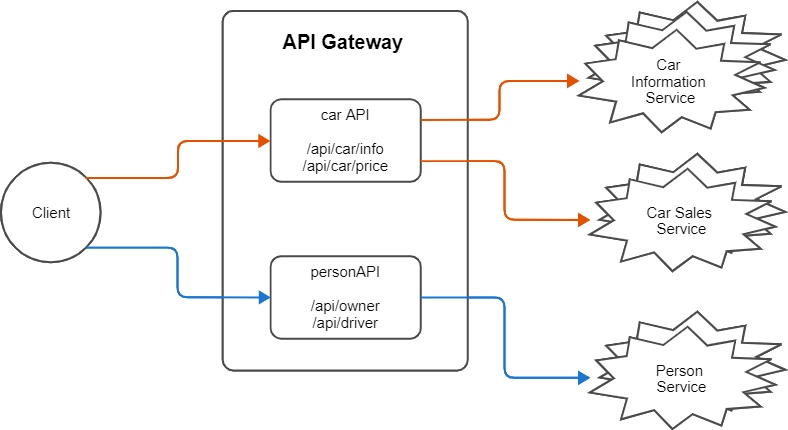 - Client로부터 Car나 Person에 대한 요청을 수신, 수신된 요청을 구분해서 Car와 관련있는 Backend Service로 전달, Person에 대한 Backend Service로 전달.